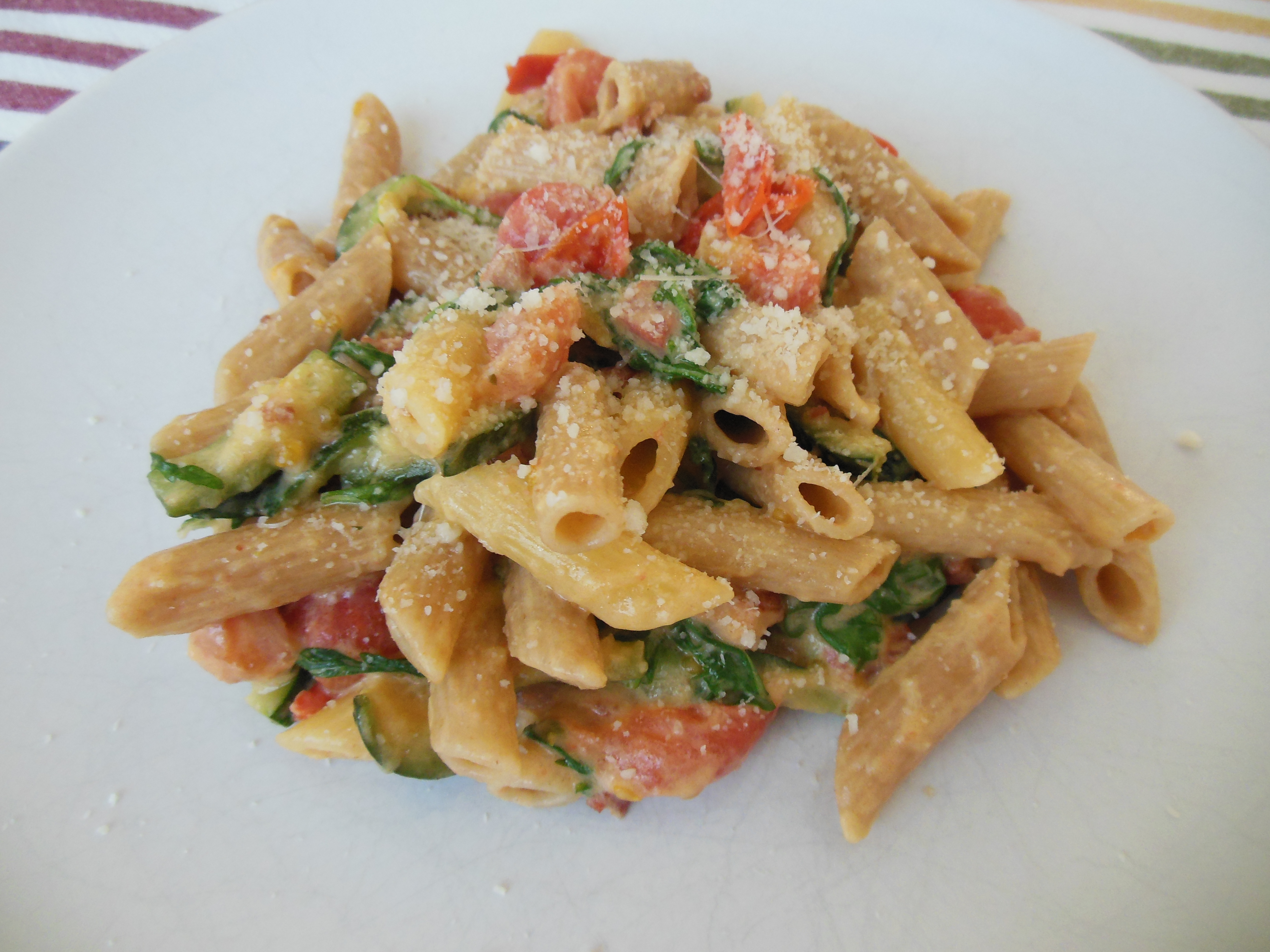 Hebben jullie ook wel eens dat je per ongeluk teveel van iets koopt en dat het vervolgens maar in de koelkast blijft liggen? Dat had ik dus met een zak rucola. Meestal zijn dat van die dingen waar je te laat achter komt zodat je het weg moet gooien, maar deze keer was ik gelukkig net op tijd. Deze pasta is dus snel bedacht en in elkaar geflanst met maar zes ingrediënten, maar dat maakt het niet minder lekker. Hij is trouwens ook nog lekker snel klaar, dus ideaal als je weinig tijd of zin hebt. Ik heb er in dit recept spekjes bij gedaan. Erg lekker, maar voor mij helaas eigenlijk iets te zout in combinatie met de boursin. Persoonlijk zou ik die de volgende keer weg laten of een kruidenkaas gebruiken die minder zout is. Als het aan mijn vriend ligt neem ik een andere kruidenkaas, want volgens hem is het natuurlijk onmogelijk om spekjes weg te laten!
