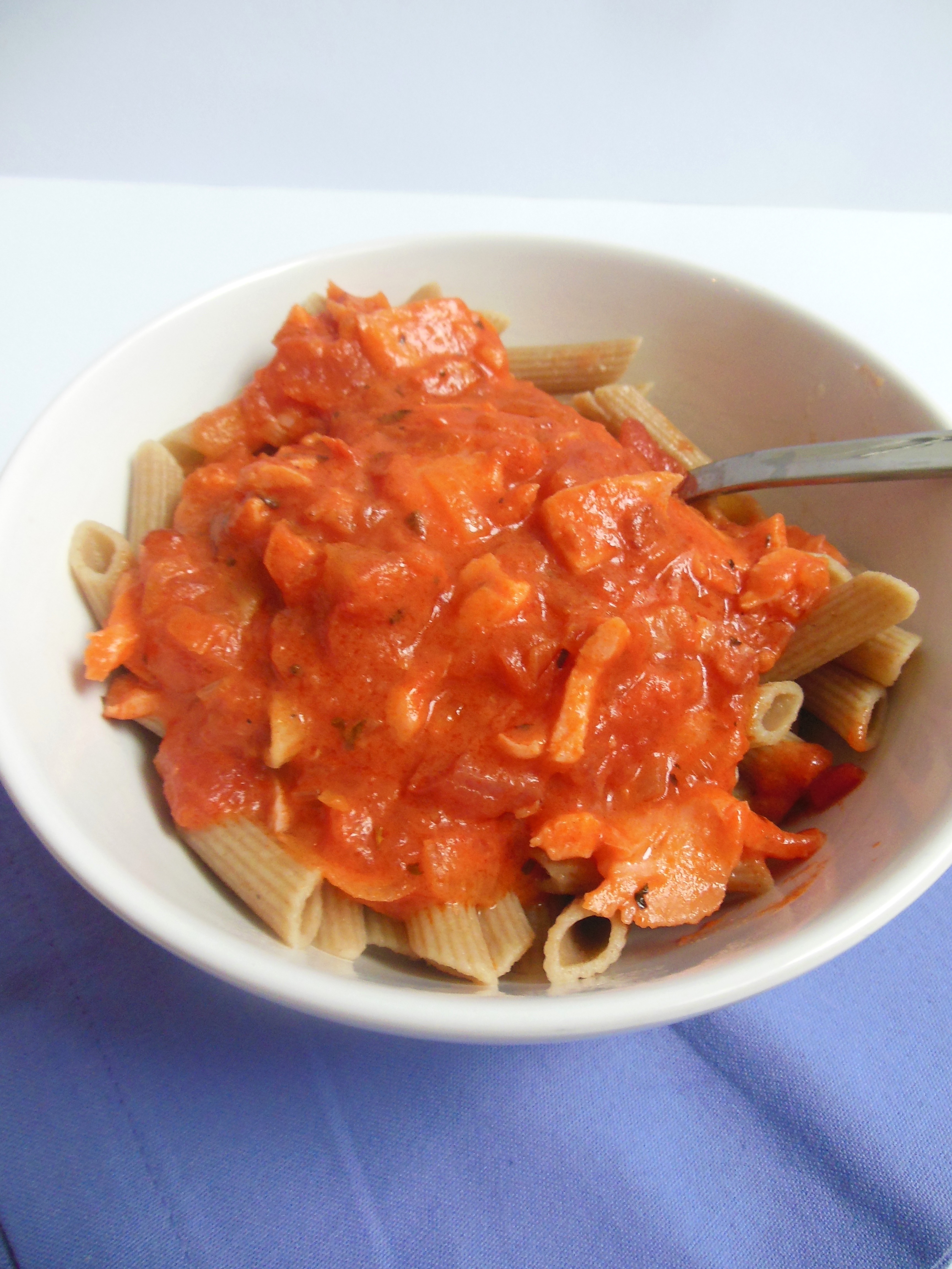 Een gedachte over “Penne met gerookte zalm, bacon en wodka saus”