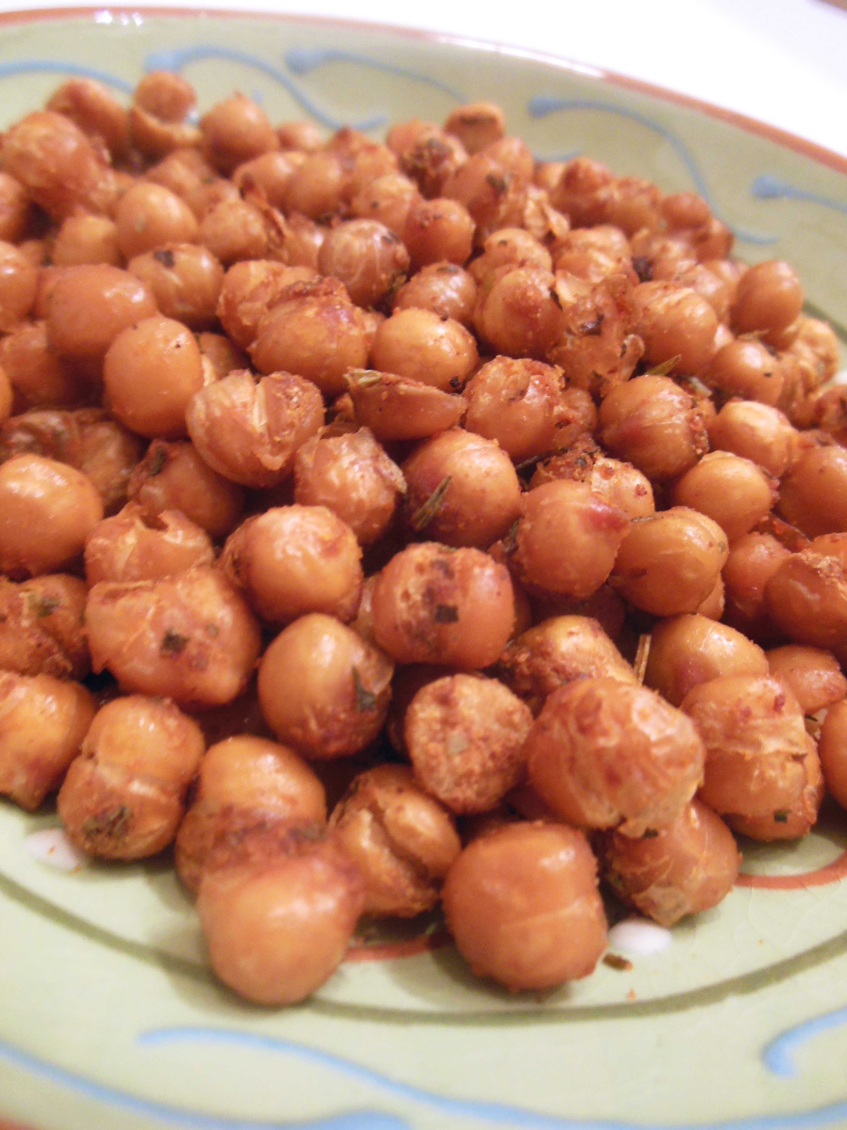 Doe de kikkererwten in een vergiet, spoel ze af en laat ze heel goed uitlekken. Ik droog ze vaak nog eens extra af met een schone theedoek. Meng alle kruiden in een kom en voeg de olie en kikkererwten toe. Schud en schep alles goed om zodat alle erwten goed bedekt zijn met olie en kruiden. Leg ze in 1 laag op een bakplaat en bak in een oven op 200 graden voor 30 minuten. Schep ze halverwege om. Serveer in een leuk schaaltje. Bewaar ze eventueel afgekoeld en afgedekt in de koelkast voor een dag.