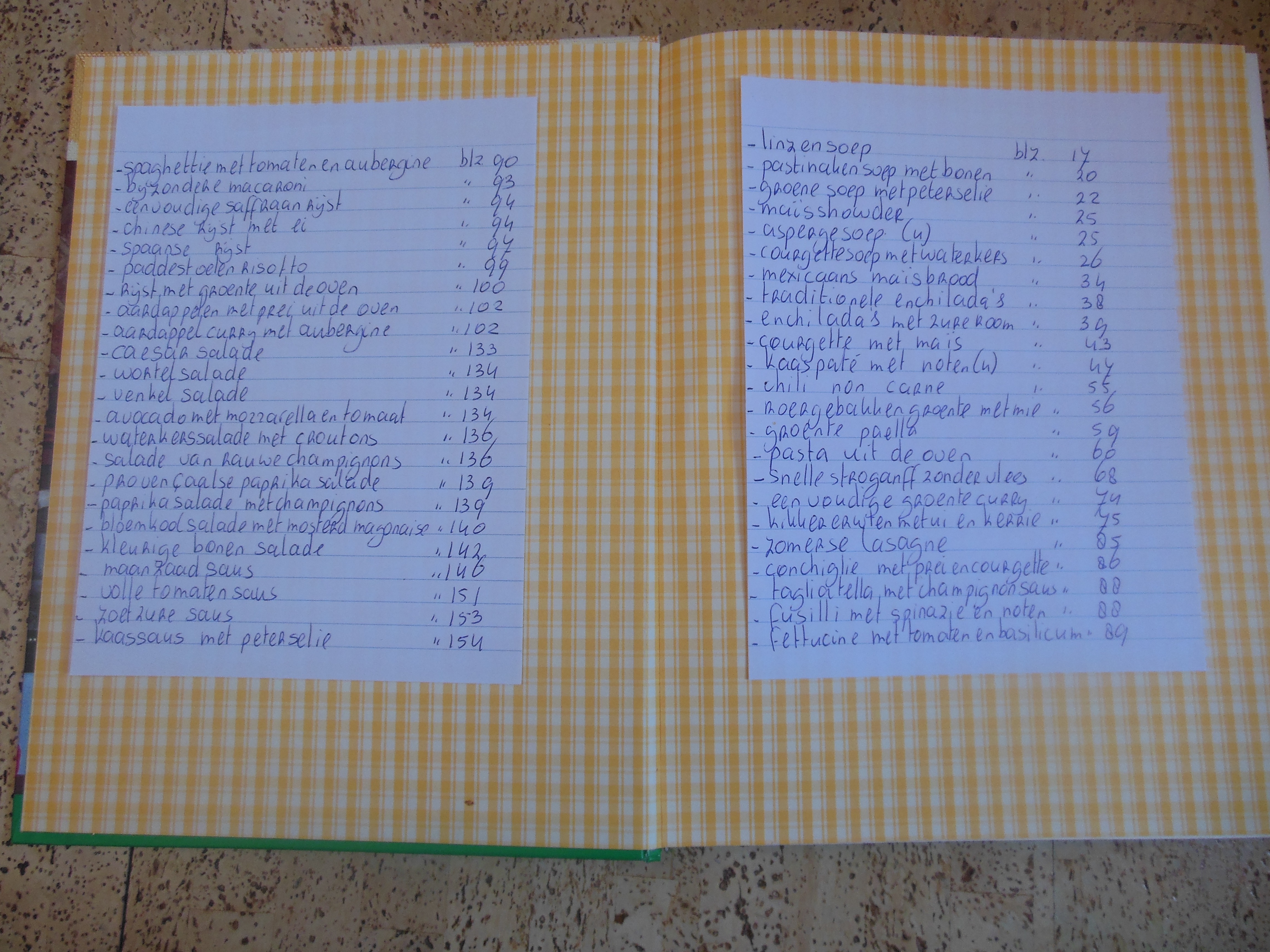 Voor ik begin met mijn favorieten lijstje wil ik jullie nog een tip mee geven. Ik weet dat heel veel mensen die uit kookboeken koken vaak heel lang aan het zoeken zijn naar een recept wat ze eerder gemaakt hebben. Ze weten dan bijvoorbeeld niet meer precies uit welk boek dat nou ook alweer was. Of ze hebben geen zin om heel de inhoudsopgave door te spitten en besluiten dan toch maar iets anders te gaan maken. Wat natuurlijk zonde is! Maar hebben jullie er ooit aan gedacht om gewoon een lijstje voor in je boek te plakken en daar de recepten met de bladzijde op te schrijven als je het gemaakt hebt? Ik doe dit bij al mijn kookboeken. En als ik iets opnieuw wil maken, hoef ik alleen maar de eerste bladzijde open te slaan om te zoeken. Echt heel handig en veel sneller! Maar dit is wel genoeg geklets voor vandaag. Hieronder vind je mijn lijst met mijn favoriete kookboeken. Laat het me weten als je meer wilt weten over een specifiek boek!