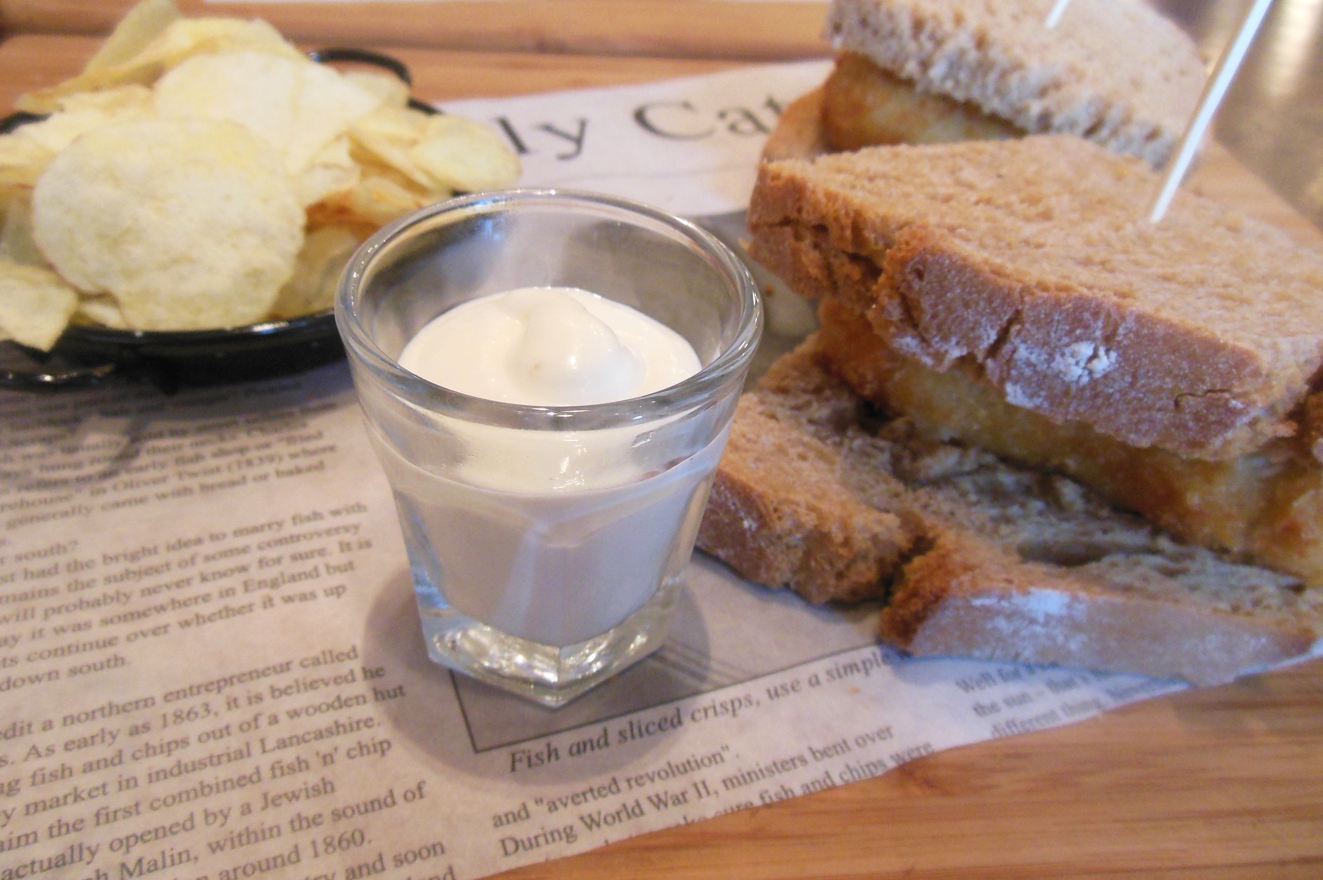 De manier van presenteren was erg leuk, namelijk op een snijplank met een stuk papier eronder wat een deel van een krant moest voorstellen. Bij ieder broodje kreeg je een klein schaaltje gevuld met chips. Dat schaaltje leek trouwens, heel schattig, op een soort klein pannetje.