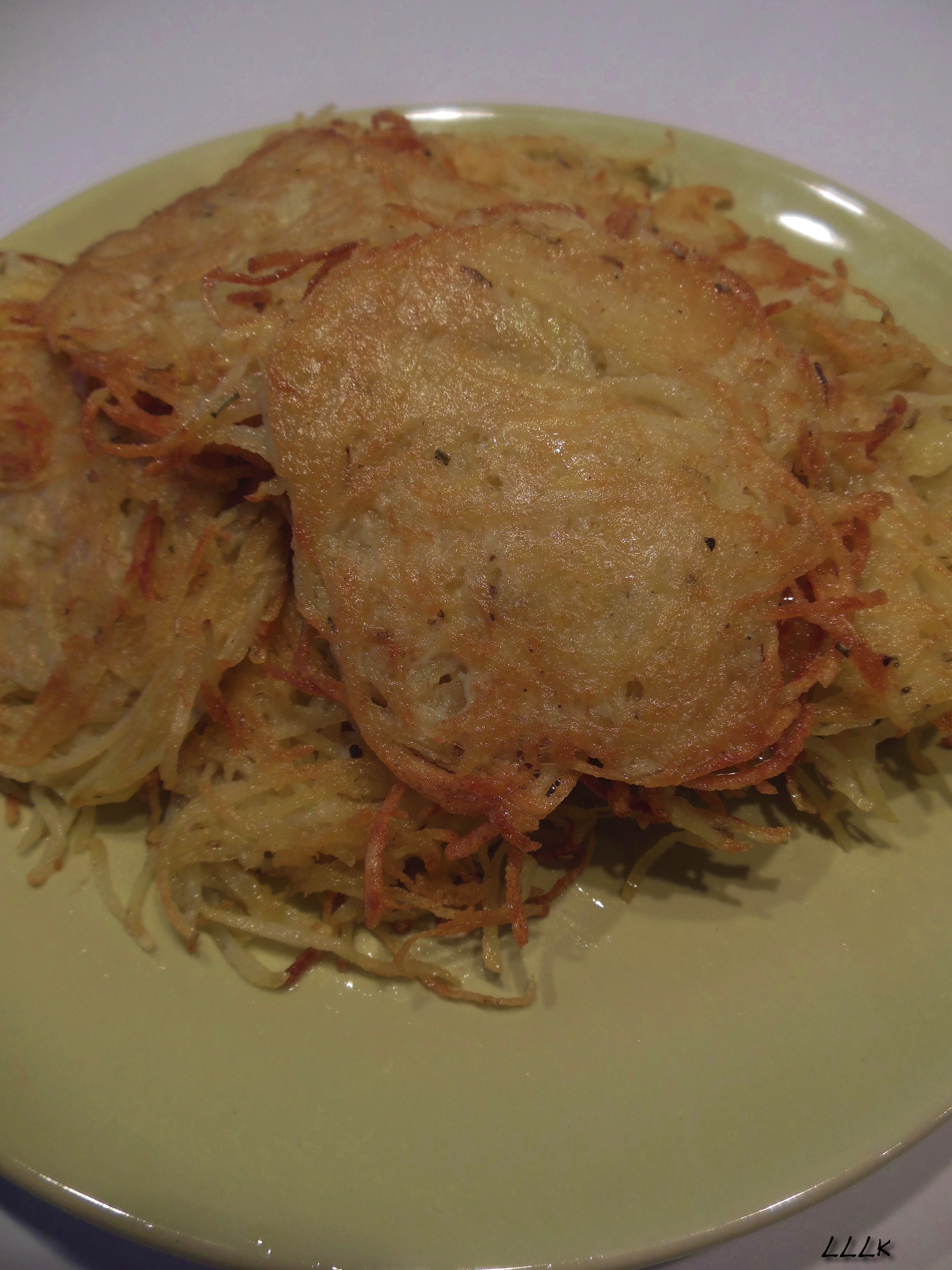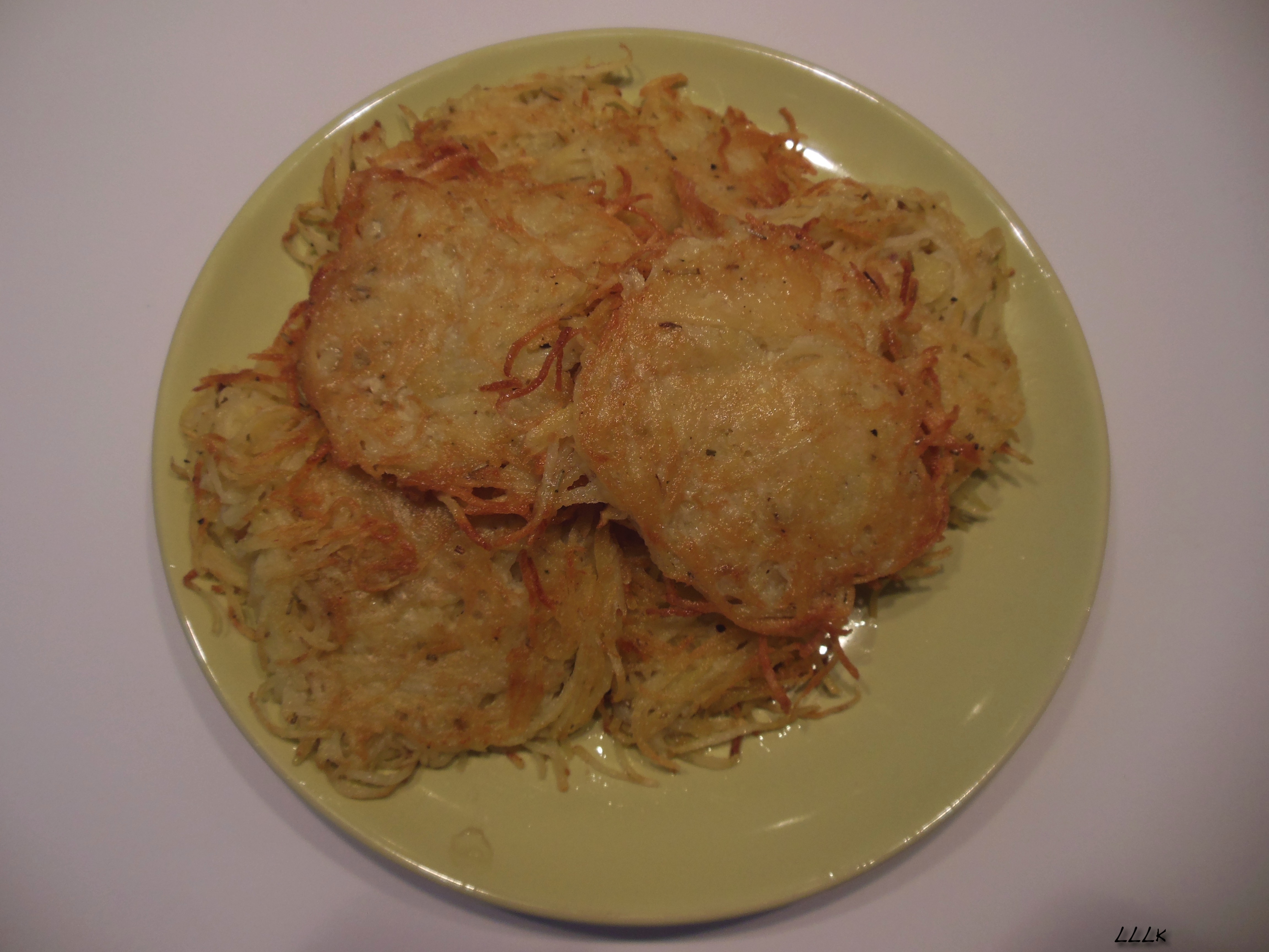 Deze foto’s zijn van mijn allereerste poging om rosti’s te maken. Ondanks dat ze net niet helemaal gelukt waren zoals ik wilde, heb ik toch besloten het met jullie te delen. Ze waren namelijk wel erg lekker! Ik weet gelukkig wel precies wat er niet helemaal goed was gegaan. Er zat te weinig ei in. De goede hoeveelheid heb ik er wel bij gezet hieronder, dus als het goed is lukken ze bij jullie beter. Laat me wel weten hoe het bij jullie gegaan is!