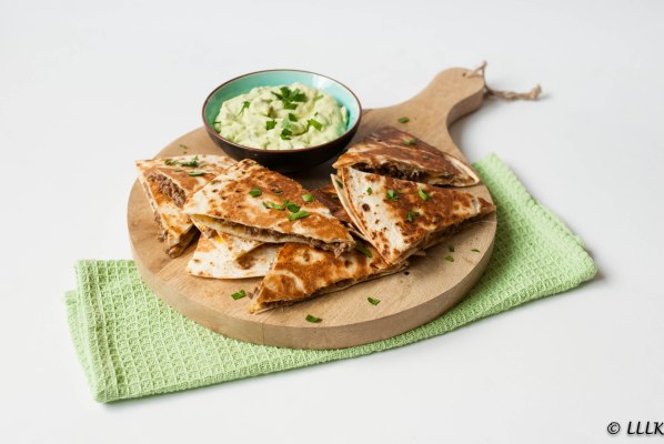 Quesadilla’s met gehakt en avocado dip