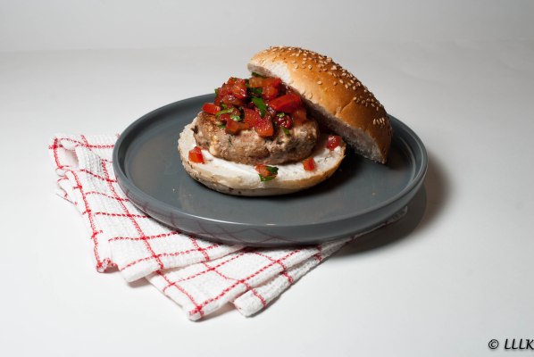 Lamsburger met feta en tomatensalsa