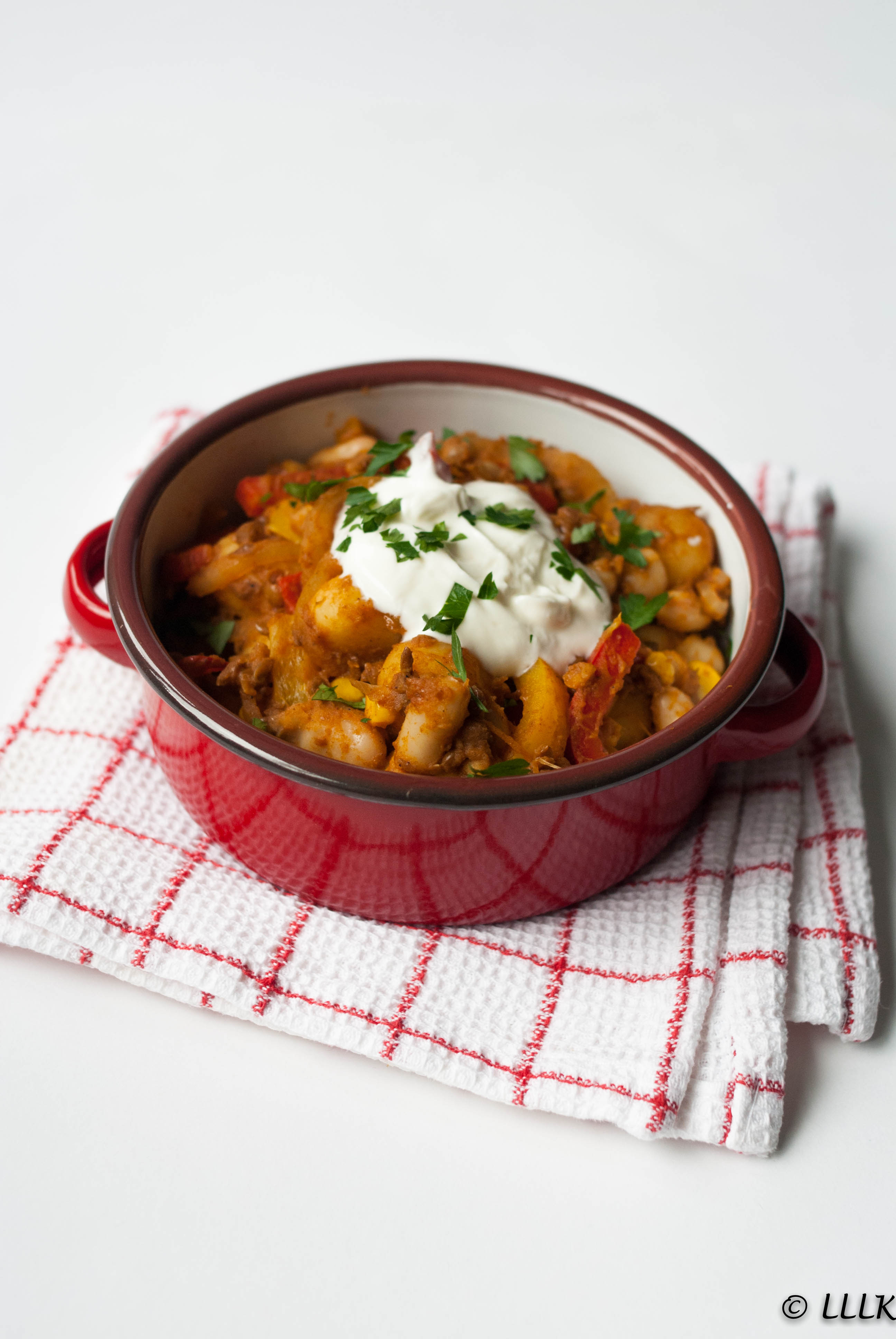 Een braadpan is in mijn keuken echt onmisbaar. Ik kan zelfs zeggen dat het mijn meest gebruikte item is in de keuken. Ik kook er namelijk bijna alles in. Van pasta’s tot curry’s en van soep tot stamppot. Nou worden deze pannen eigenlijk meestal gebruikt voor het maken van bijvoorbeeld stoofvlees, maar stoofpotjes zoals deze horen daar natuurlijk ook bij. Ik vind het heerlijk als ik alles in één pan kan maken. Behalve dat het makkelijk is, is het ook nog eens erg lekker omdat alle smaken goed bij elkaar kunnen komen. Deze vega bonen stoof met krieltjes, linzen en paprika is daar een goed voorbeeld van. Als je er liever toch wat vlees bij wilt, zou je er nog wat worstjes bij kunnen serveren.