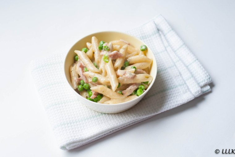 Lente pasta carbonara met doperwten en een vleugje citroen