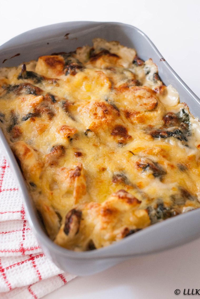 Iedereen om mij heen weet dat tortellini altijd mijn favoriete maaltijd was. We aten het thuis eigenlijk altijd op de zelfde manier. Namelijk met spinazie en tomatensaus uit de oven. Het recept ervan kun je al op mijn site vinden. Toen ik later bij een vriendin bleef eten en we zelf voor onze maaltijd moesten zorgen, kwam ik erachter dat ze net als ik gek was op tortellini. Ik was natuurlijk wel erg benieuwd hoe ze het zelf altijd at. We warmde een pak bevroren spinazie op en deden was kaassaus in een pannetje dat we ook alleen maar op hoefde te warmen. Echt speciaal was het niet, maar toch werd ik er een beetje verliefd op. Sindsdien heb ik mijn eigen variatie er op gemaakt die ik vooral maak wanneer ik alleen eet. Laatst realiseerde ik me dat ik het recept nooit met jullie gedeeld heb. Het was dus hoog tijd om daar eens verandering in te brengen.