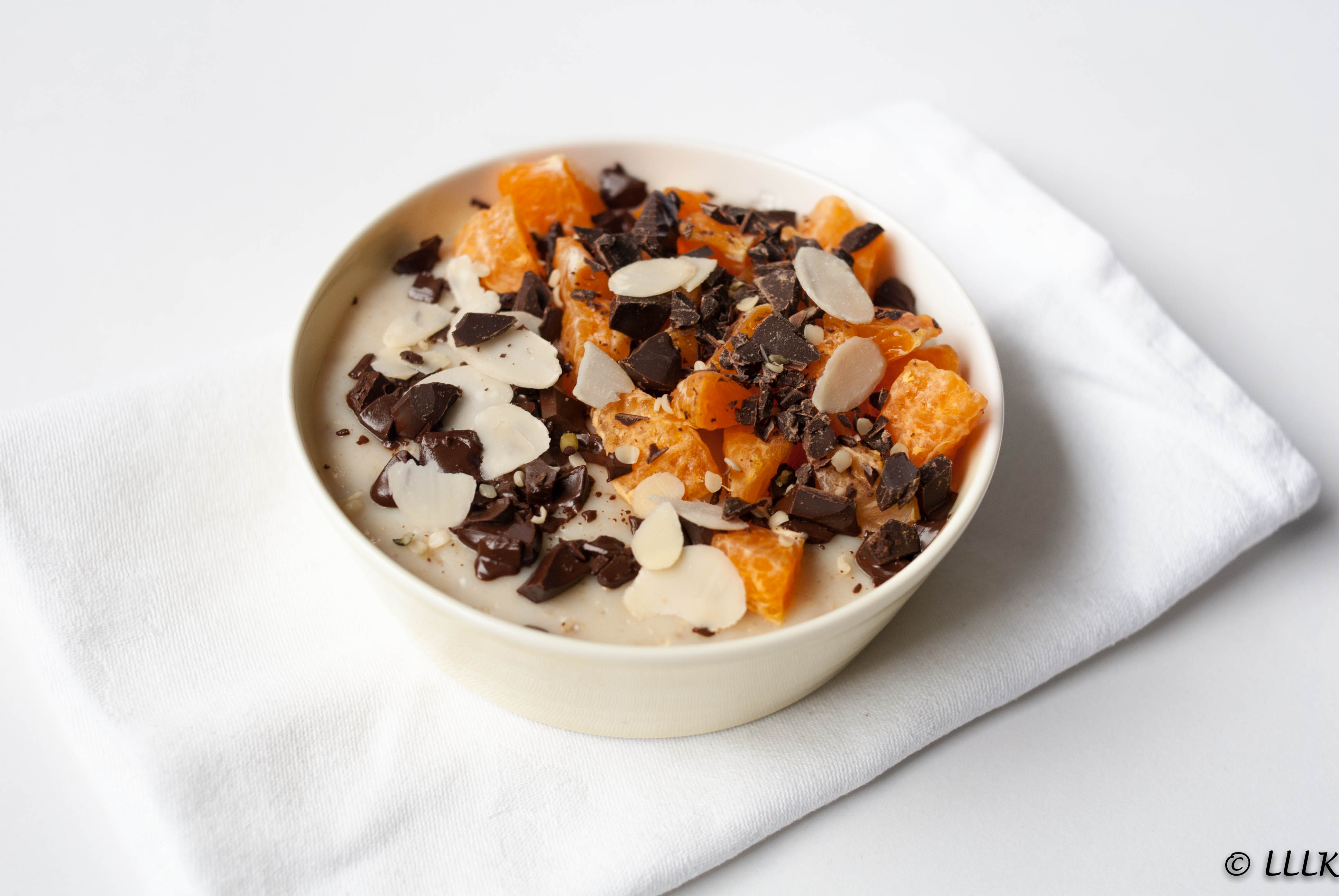 Zo af en toe heeft iedereen wel eens behoefte aan wat chocola. Je kunt dan natuurlijk gewoon een stukje van een reep afbreken. Maar het is nog veel lekkerder om het met je ontbijt te combineren. In onze fruitschaal lagen nog wat mandarijnen die ik hier heel goed bij kon gebruiken. Het deed me een beetje denken aan de combinatie van chocola en sinaasappel die je wel eens bij chocoladekoekjes enzo voorbij ziet komen. Om het enigszins nog wat gezond te houden, koos ik dit keer wel voor pure chocola. Mocht je daar niet van houden, dan kun je natuurlijk ook voor melk chocola kiezen. In eerste instantie wilde ik de havermout door de yoghurt roeren. Iets wat ik meestal doe, omdat het mijn favoriete manier is om havermout te eten. Op die manier kon ik een soort stracciatella yoghurt creëren. Maar toen ik me bedacht dat de chocolade stukjes door de warme havermout heerlijk overal doorheen zouden smelten, leek me dat toch een aantrekkelijker idee. Al lijkt het me ook wel leuk om allebei de varianten een keer te proberen.