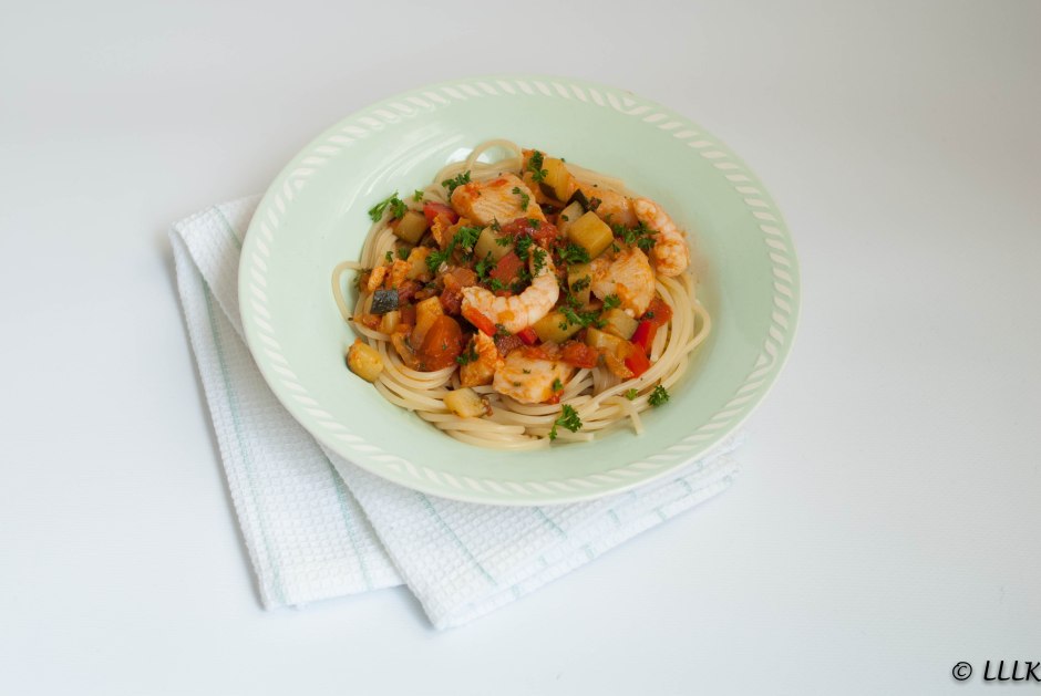 Laatst waren we de vriezer eens aan het uitzoeken. Vaak kom je dan dingen tegen waarvan je bijna vergeten was dat je ze had. Zo kwamen we langs een aantal zakken bevroren vis en garnalen. Los van elkaar was het net te weinig om er wat leuks mee te kunnen doen. Dus was het het makkelijkste om ze te combineren. Samen met wat groente en een tomatensaus creëerde ik er deze eenvoudige pasta van. Lees verder “Spaghetti met vis en garnalen”